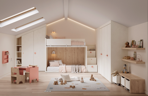 Diseñamos habitaciones que se adaptan a cada etapa, combinando funcionalidad, estilo y confort. Soluciones versátiles para que los más jóvenes disfruten de un espacio propio, práctico y acogedor.