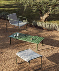 Mesa de centro Maurina · Acero galvanizado verde y azulejos 122 x 61 cm