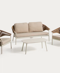 Set Zuara · Sofá 3 plazas, 2 sillones y mesa de centro en aluminio crudo y cuerda marrón