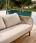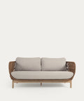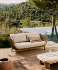 El sofá Catalina 3 plazas combina madera maciza de acacia con certificación FSC 100 % y cuerda trenzada beige resistente a los rayos UV, creando un diseño exterior de estilo natural y acogedor. Perfecto para terrazas o porches cubiertos, su línea ligera y textura artesanal aporta un ambiente cálido y relajado, mientras los cojines desenfundables facilitan su mantenimiento.