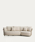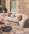 El sofá Osani de 2 plazas con módulo curvo combina diseño actual y confort en un conjunto exterior elegante y versátil. Su estructura ligera de aluminio crudo y el respaldo en cuerda trenzada tono topo generan una estética natural y resistente, ideal para terrazas, porches o jardines donde la comodidad y el estilo son protagonistas.